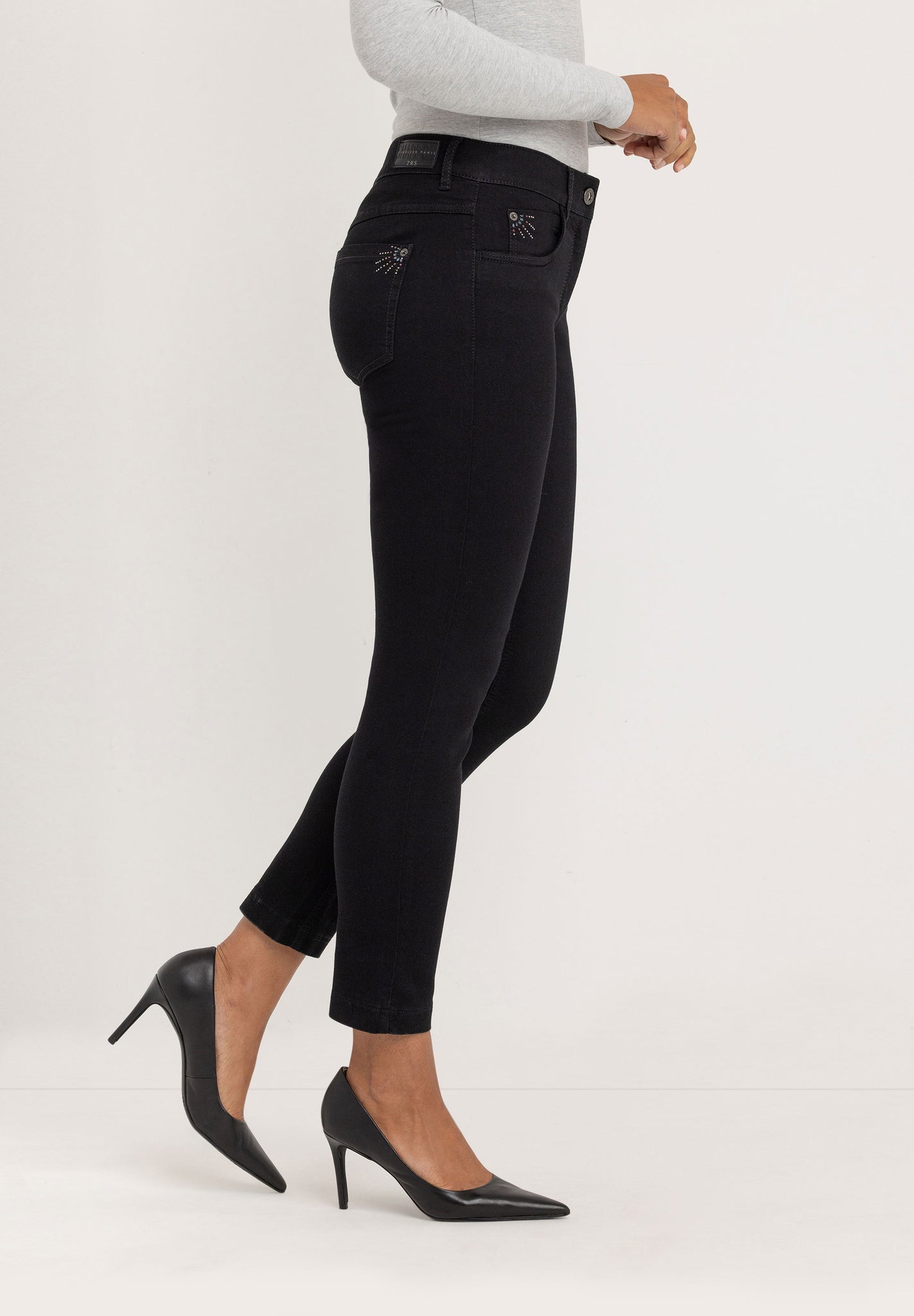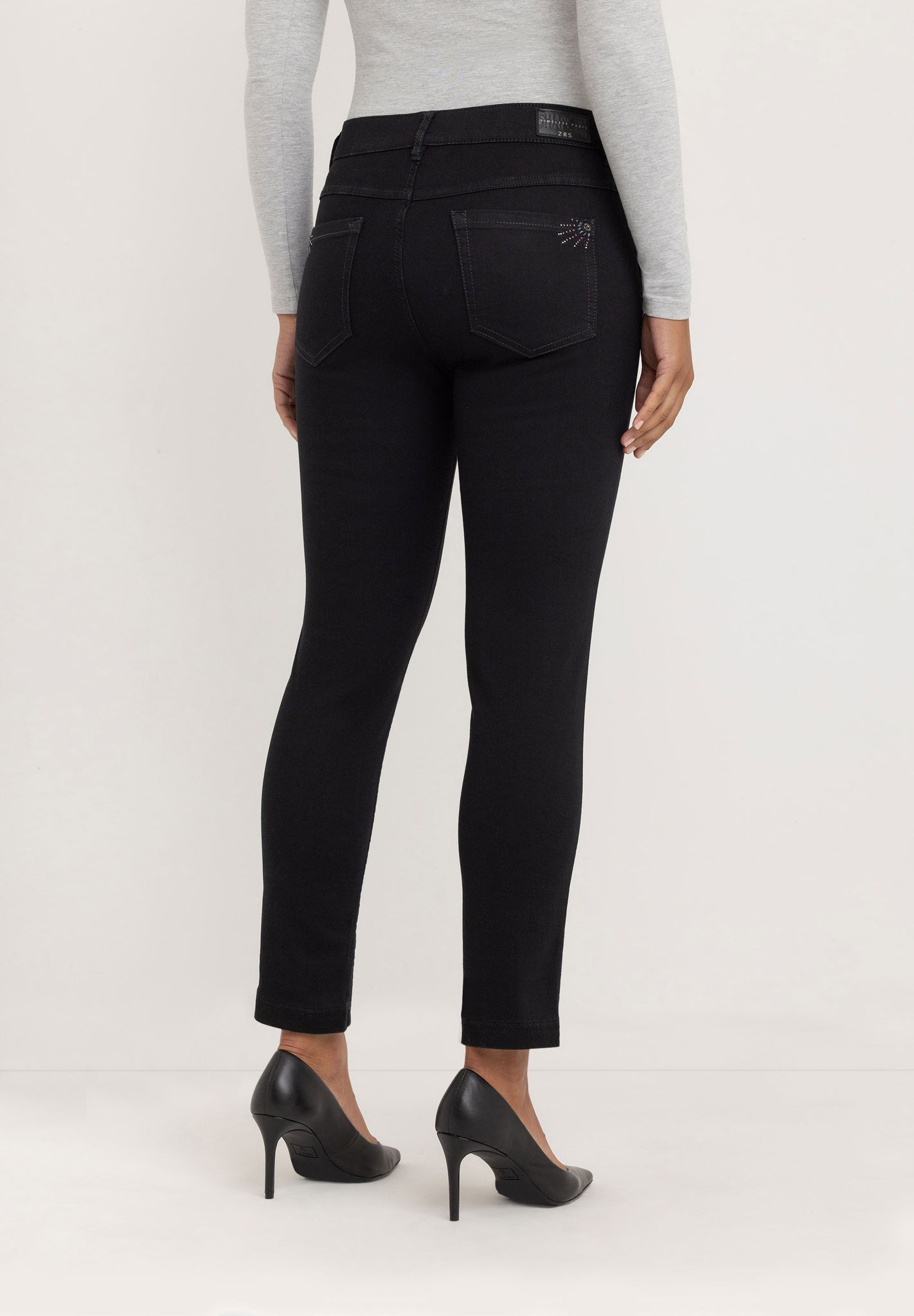 Twigie Skinny Jeans in Black-Black combines soft stretch denim with an authentic look. A comfortable mid-rise and our ZRS invisible elastic inside the waistband create a smooth, gap-free fit and all-day comfort, Finished with a classic five‑pocket design and zip fly. It's durable and easy to style for everyday wear. Mix and match it with the ZRS Timeless Pants collection.